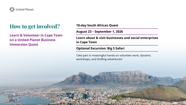As part of its ongoing commitment to global engagement, United Planet continues to offer its South Africa Social Quest, a 10-day immersive program in Cape Town that combines volunteer service, leadership development, and cultural exploration. Taking place from August 23 - September 1, 2026, participants will engage directly with local organizations, including Philisa Abafazi Bethu, while taking part in workshops, community programs, and site visits to social enterprises.